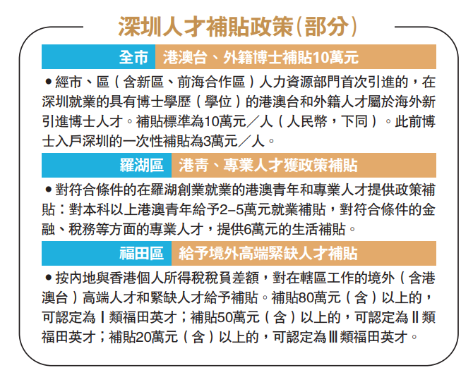 Will說,自己決定定居深圳原因有三:第一,深圳的文化背景和香港更接近;第二,深圳年輕人多且發(fā)展更快;第三,大灣區(qū)給予港人的政策補(bǔ)貼更有利於他創(chuàng)業(yè)?!肝沂侨ツ?1月在深圳前海開的公司,不僅享受辦公室租金優(yōu)惠,還居住在政府提供的人才公寓裏?!筗ill舉例,自己獲得了人才公寓房資格,目前居住在深圳灣,50多平米的公寓租金僅需三千多元人民幣。「按照市場價(jià),這裏的租金大概是一萬多。我覺得港人來內(nèi)地創(chuàng)業(yè),應(yīng)首選大灣區(qū),初期成本是真的很低?!?/p>