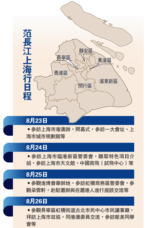 本次范長江行動分為幾個板塊。首先通過參觀一大會址和展館,實(shí)地了解中國共產(chǎn)黨的「來時路」;其次通過參觀自貿(mào)區(qū)臨港新片區(qū)、虹橋商務(wù)區(qū)、進(jìn)博會,以及上海商飛等地,感受上海始終不斷向上的活力。最後,通過探訪舊區(qū)改造、市民中心等地,了解上海在城市治理上的「繡花功夫」?;顒舆€特別安排了港生與在滬港人互動活動。