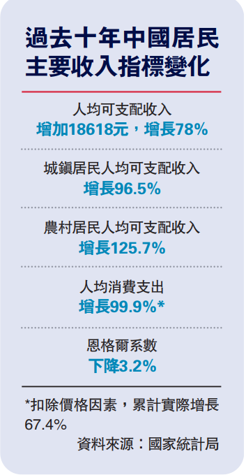 (大公報(bào)記者 張帥北京報(bào)道)據(jù)國(guó)家統(tǒng)計(jì)局10月11日發(fā)布的中共十八大以來經(jīng)濟(jì)社會(huì)發(fā)展成就系列報(bào)告,2021年全國(guó)居民人均可支配收入35128元(人民幣,下同),比2012年的16510元增加18618元,扣除價(jià)格因素,累計(jì)實(shí)際增長(zhǎng)78.0%,年均實(shí)際增長(zhǎng)6.6%。在2013-2020年間,全國(guó)農(nóng)村貧困人口累計(jì)減少9899萬(wàn)人,年均減貧1237萬(wàn)人,對(duì)全球減貧貢獻(xiàn)率超過七成。中國(guó)居民收入較快增長(zhǎng),收入結(jié)構(gòu)不斷改善,消費(fèi)水平持續(xù)提高,生活質(zhì)量穩(wěn)步提升。