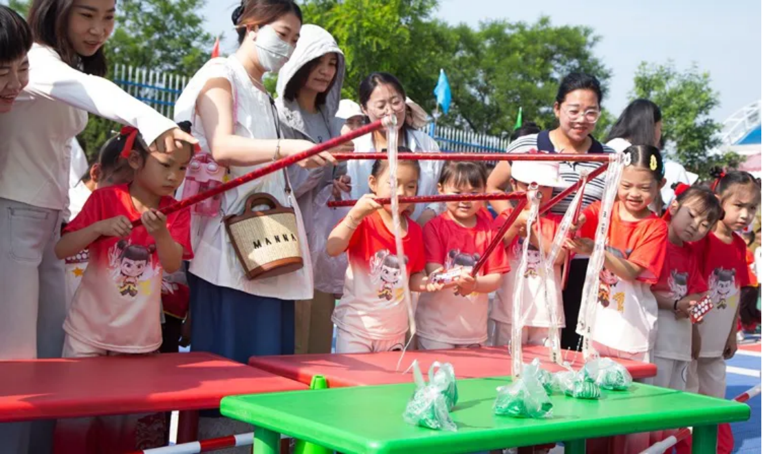 遊園活動以「哪吒闖關(guān)卡」為線索,設(shè)置了18個特色項目,巧妙融合了端午民俗與哪吒元素,讓孩子們在包粽子、品美食的過程中,沉浸式體驗傳統(tǒng)節(jié)日的文化內(nèi)涵,展現(xiàn)了河曲縣實驗幼兒園「遊戲化學(xué)習(xí)」的教育特色。
