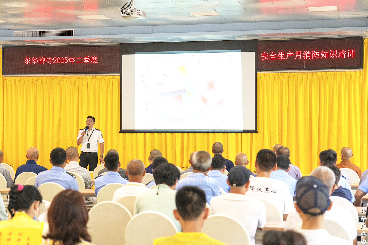 近日,東華禪寺舉辦二季度消防安全知識(shí)講座暨實(shí)操演練活動(dòng)。本次活動(dòng)特邀廣東省消防協(xié)會(huì)專家黃耀文教官擔(dān)任主講人,寺院僧眾及工作人員共同參與。講座通過理論教學(xué)、案例警示、器材講解及現(xiàn)場實(shí)操等環(huán)節(jié),全方位強(qiáng)化人員消防安全意識(shí),提升應(yīng)急處置能力。