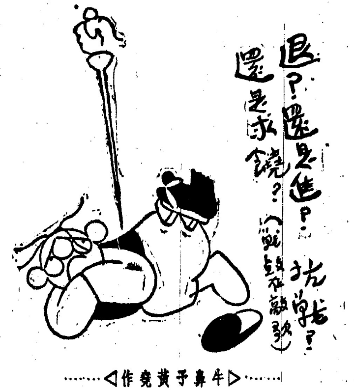 《大公報(bào)》的抗戰(zhàn)漫畫,多出自名家之手,而且緊貼戰(zhàn)局進(jìn)展。1937年8月2日,《大公報(bào)》上海版發(fā)表「牛鼻子黃堯作」的漫畫。畫面中,一隻木屐踩在「牛鼻子」身上,一柄刺刀居高臨下。